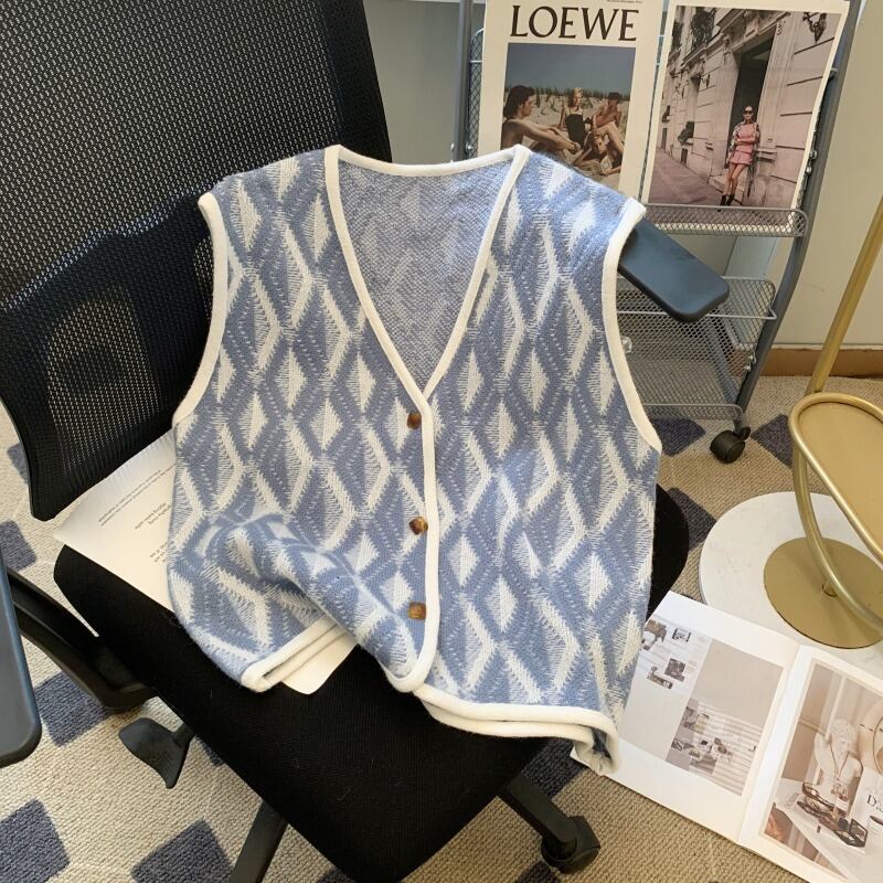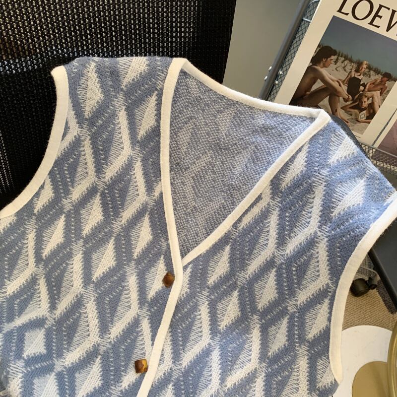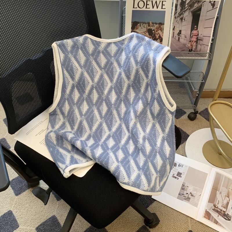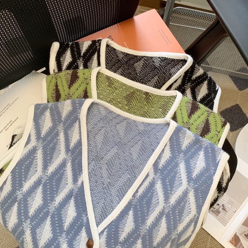 Nomikuma ニットベスト V ネックレトロ幾何学アーガイル秋セーターチョッキ因果ノースリーブニットベスト オータム 秋物 Vネック