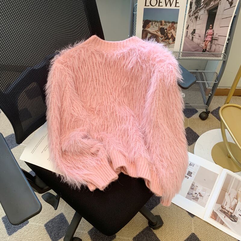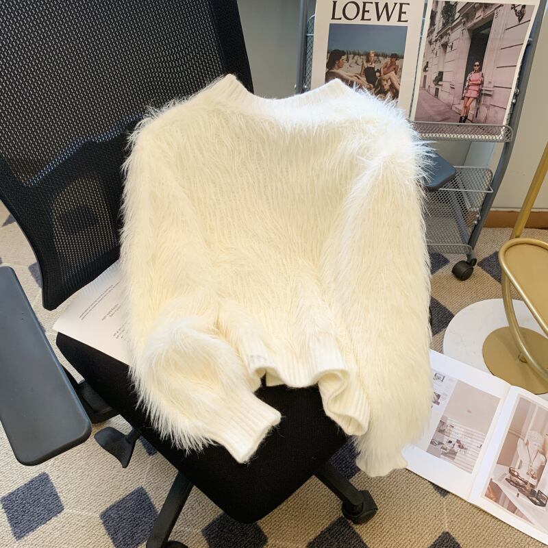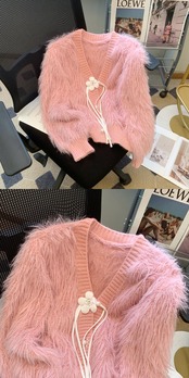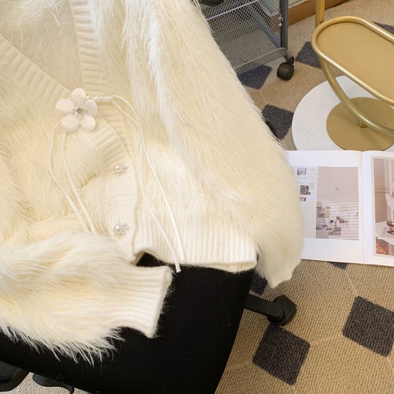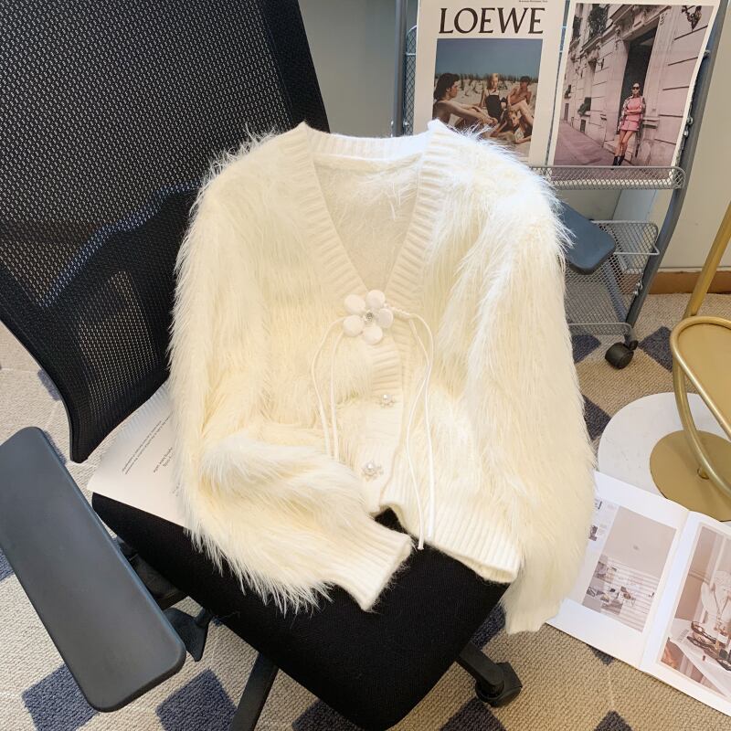 Nomikuma 秋冬ミンクカシミヤ V ネックセーターコート甘い花リボン肥厚ニットカーディガン 大人ガーリー スウィート キュート カジュアル オータム 秋物 ウィンター 冬物 Vネック フラワーデザイン