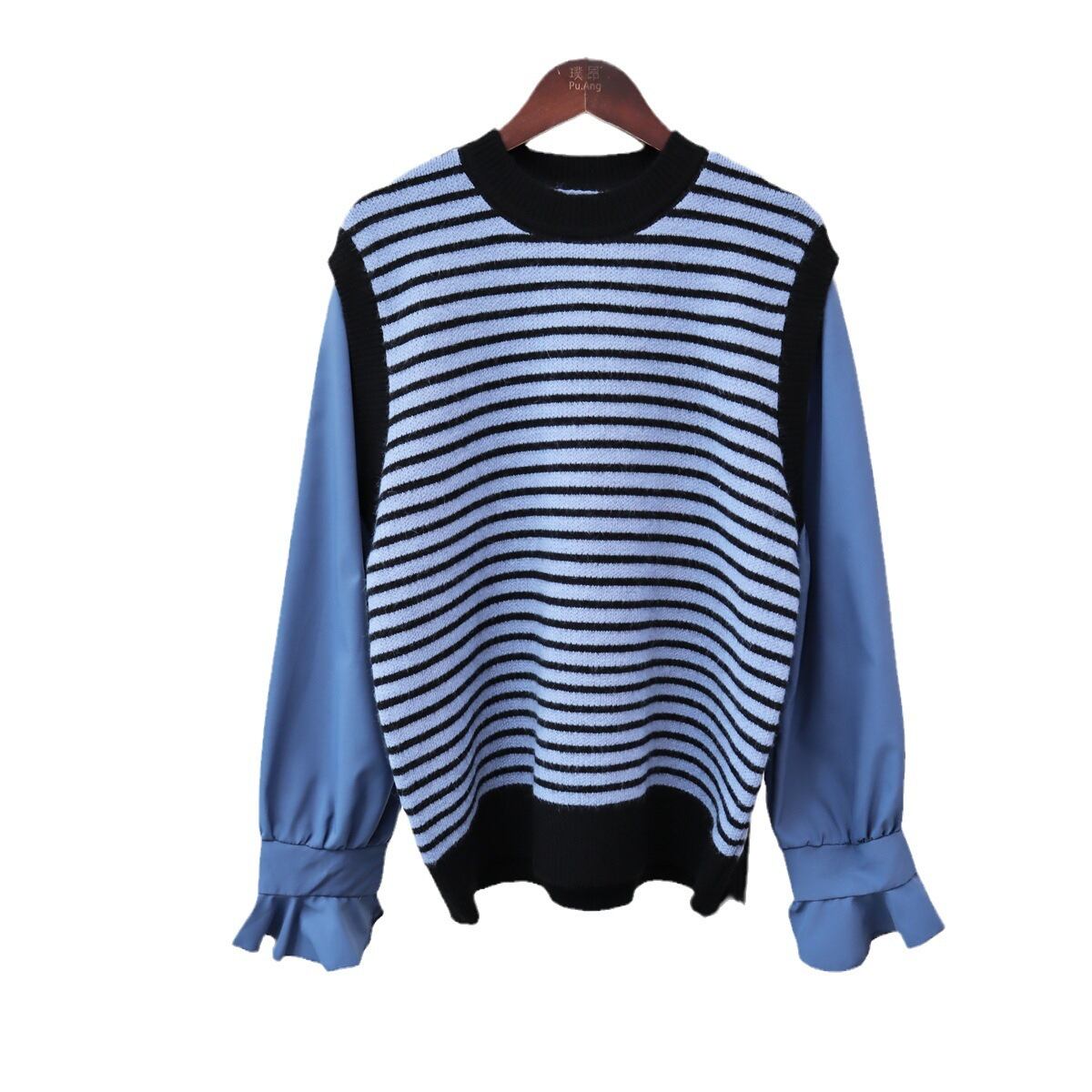 Nomikuma 秋冬ブラウスパッチワークニットトップス偽 2 枚セータープルオーバー オータム 秋物 ウィンター 冬物