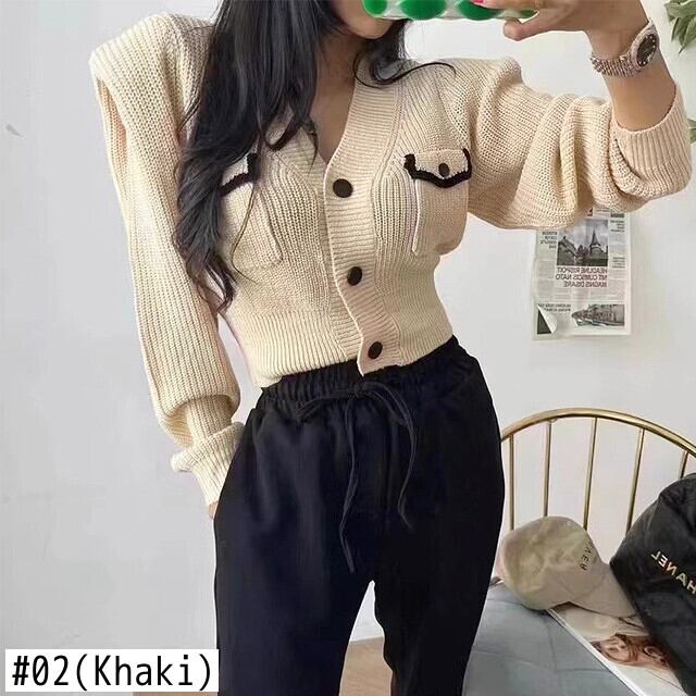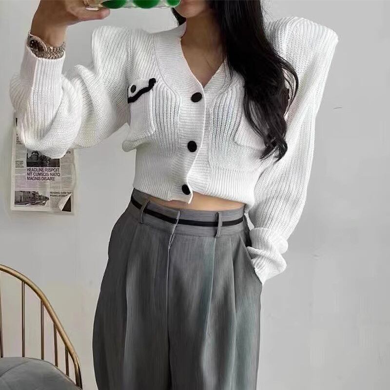 Nomikuma V ネック シングルブレスト スリム ウエスト ショート ニットウェア コート 秋 長袖 セーター カーディガン ロング オータム 秋物 Vネック