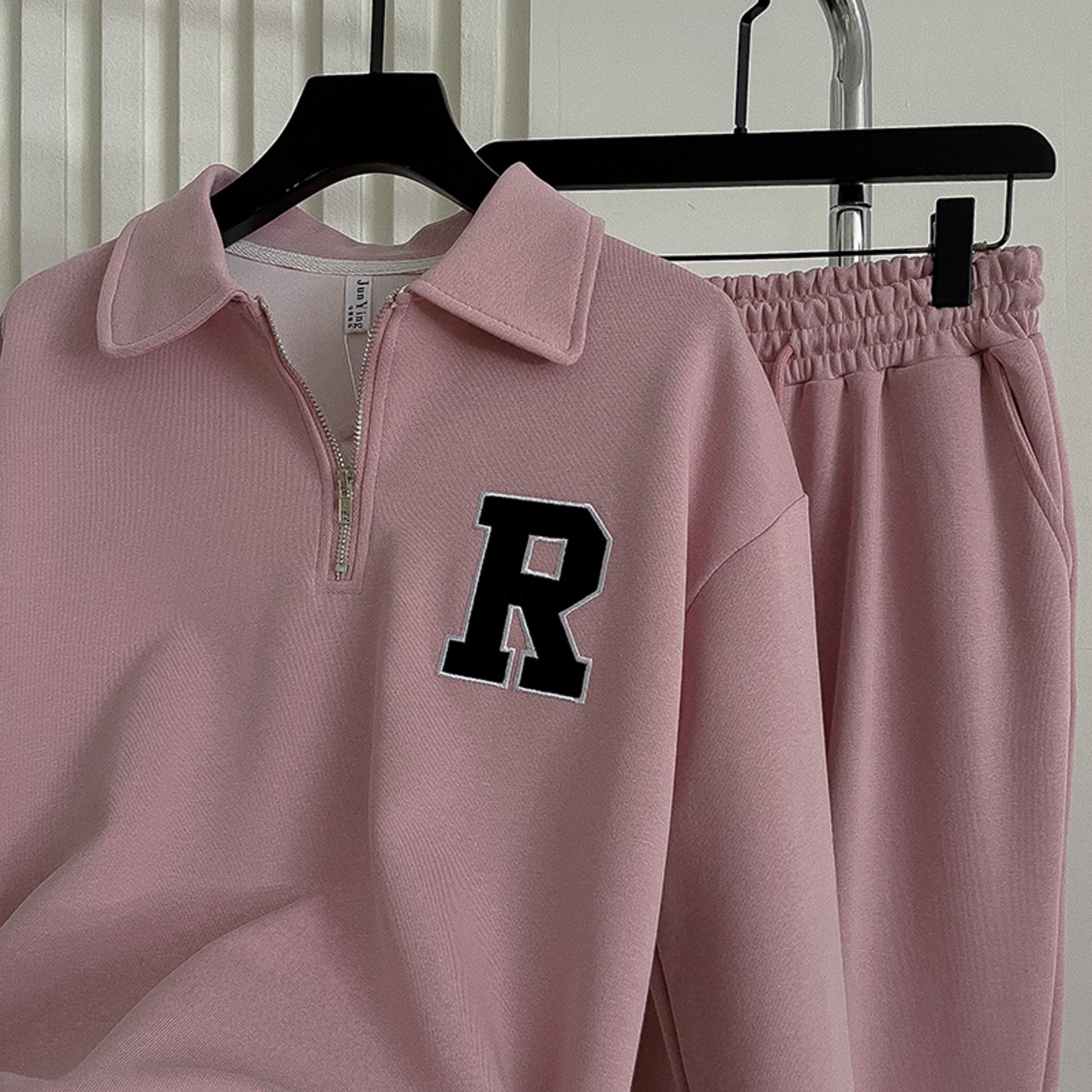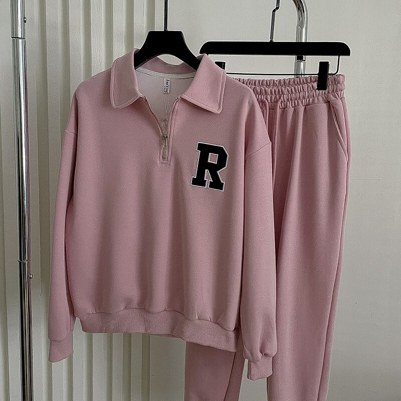 Nomikuma コーザルレターターンダウンカラープルオーバースウェットシャツ + ウエストゴムハーレムパンツ秋 2 点セットレディース衣装 エラスティック 伸縮 オータム 秋物