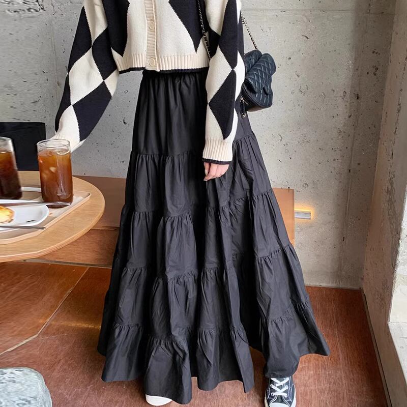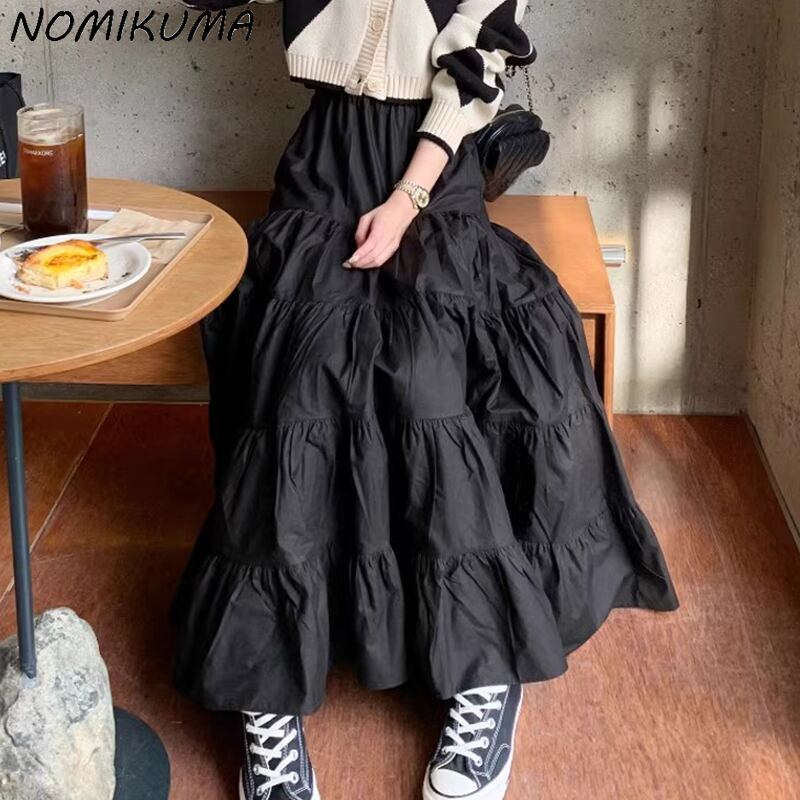 Nomikuma 秋シック レイヤード プリーツ ウエスト パッチワーク Aライン ケーキスカート カジュアル 5分丈スカート レッド オータム 秋物