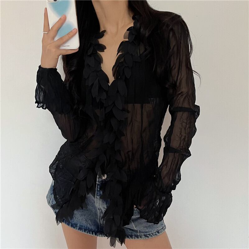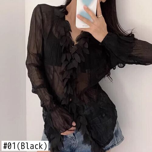 Nomikuma シャツシック秋 V ネック折り目薄いカジュアルフレアスリーブシフォンブラウストップスデ オータム 秋物 Vネック
