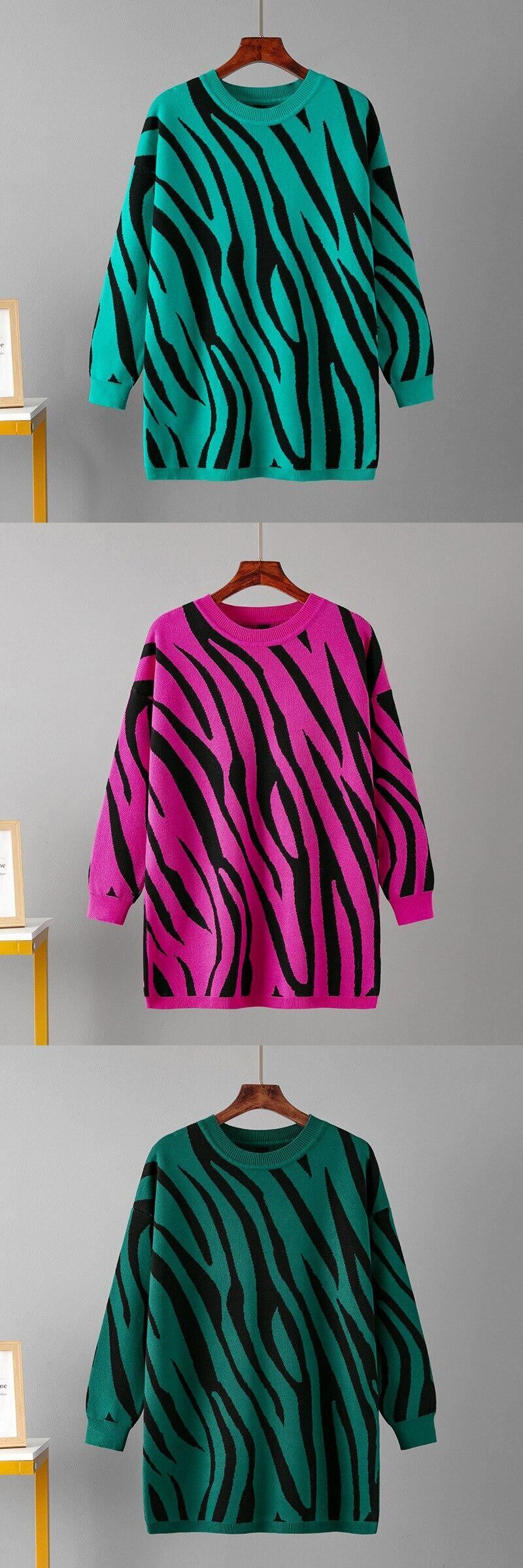 Nomikuma 秋冬プルゼブラストライプニットプルオーバーセーター因果ミディアムロングニットトップス オータム 秋物 ウィンター 冬物