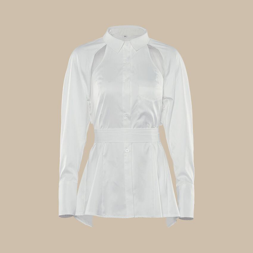 Nomikuma 秋シャツ長袖中空トップス背中開いた包帯スリムウエストブラウス ロング オータム 秋物