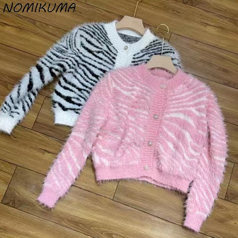 Nomikuma カーディガンフェイクミンクカシミヤセーターコート秋因果ショート甘いニットカーディガントップス 大人ガーリー スウィート キュート カジュアル オータム 秋物 ファー