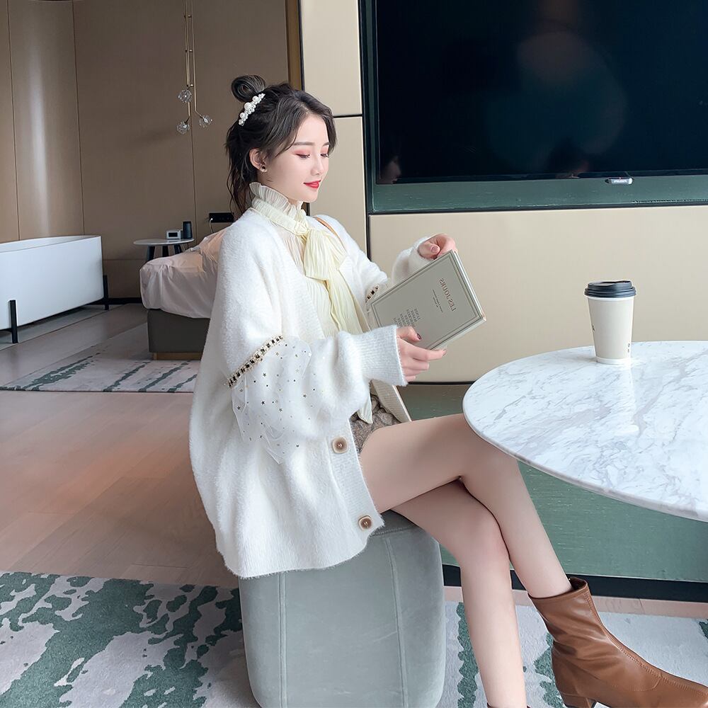 Nomikuma 秋冬フェイクミンクカシミヤニットカーディガンシックメッシュパッチワークセーターニットコート オータム 秋物 ウィンター 冬物 ファー