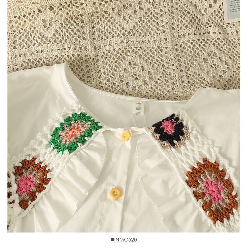 Nomikuma レトロエスニックスタイル刺繍ピーターパン襟人形シャツレディース秋トップスシックブラウス オータム 秋物