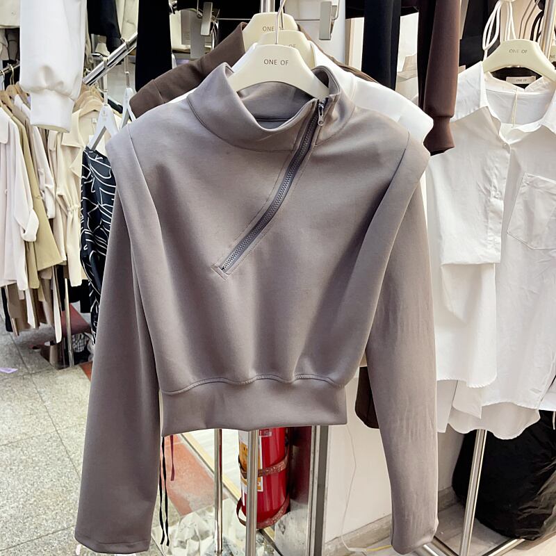 Nomikuma 秋トレーナージッパースタンドネック長袖ジャンパー因果プルオーバーショートパーカートップ ロング オータム 秋物