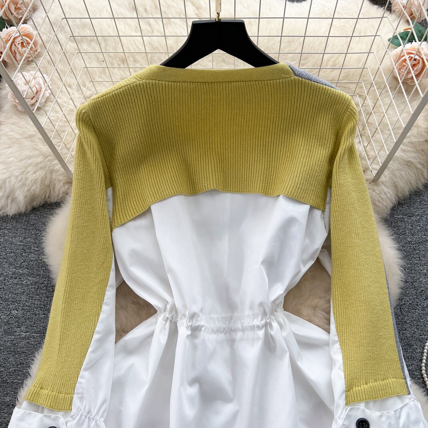 Nomikuma 秋因果フェイク 2 枚ヒットカラーニットパッチワークブラウス長袖シャツ ロング オータム 秋物