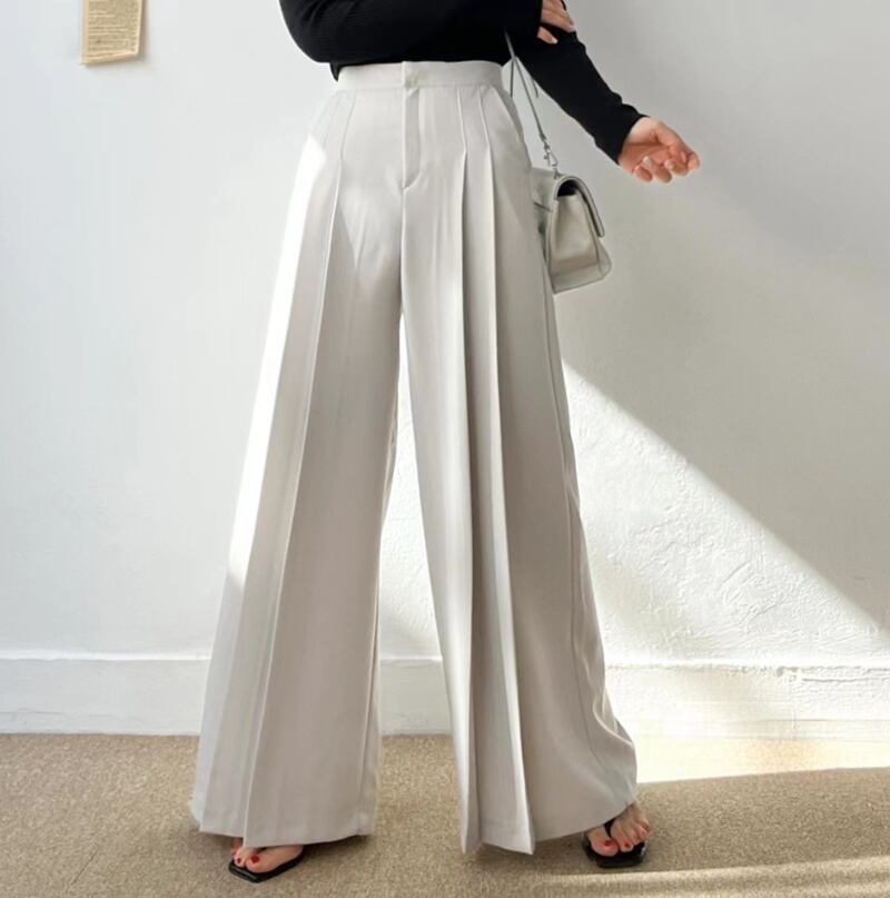 Nomikuma ウエスト付きパンツカジュアルソリッド長ズボンワイドレッグパンツ Pantalones ロング ワイドパンツ ソリッドカラー
