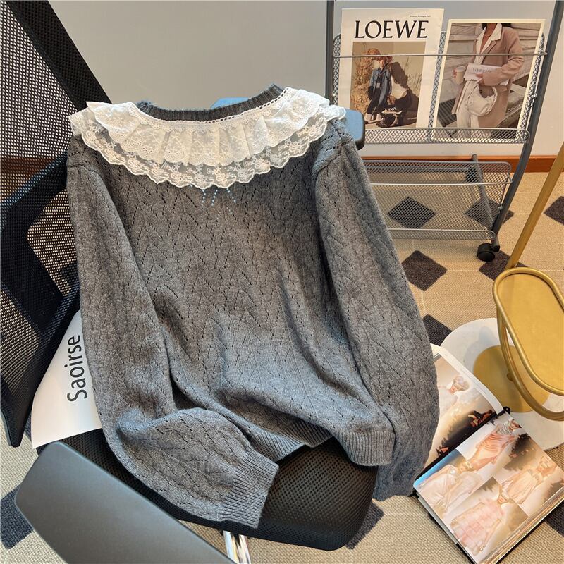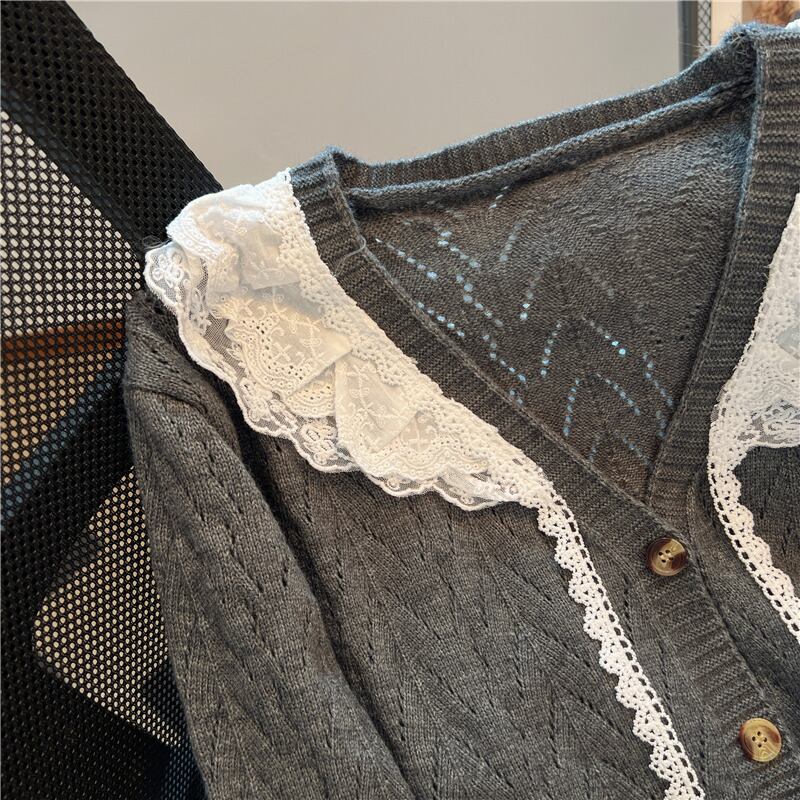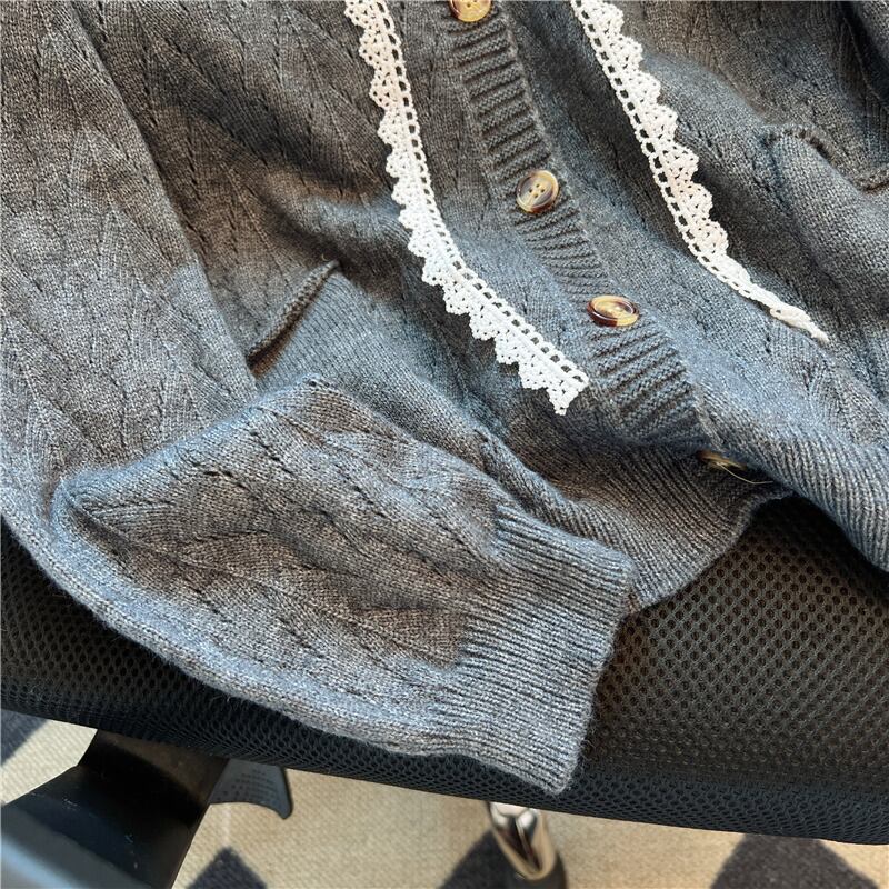 Nomikuma 秋 V ネック因果レースフリルパッチワークニットセーターカーディガンコートシングルブレスト長袖ニットウェア ロング オータム 秋物 Vネック