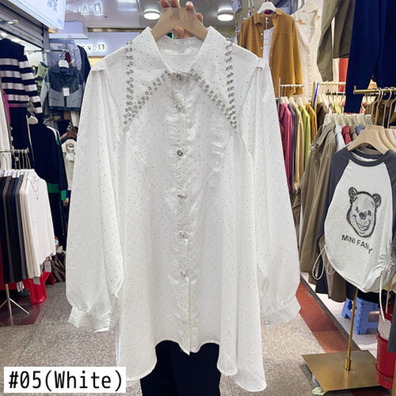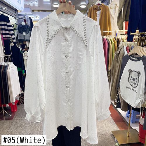 Nomikuma ビーズブラウスシックダイヤモンドビーズターンダウンカラー秋ミディアムロングシャツカミーサ オータム 秋物