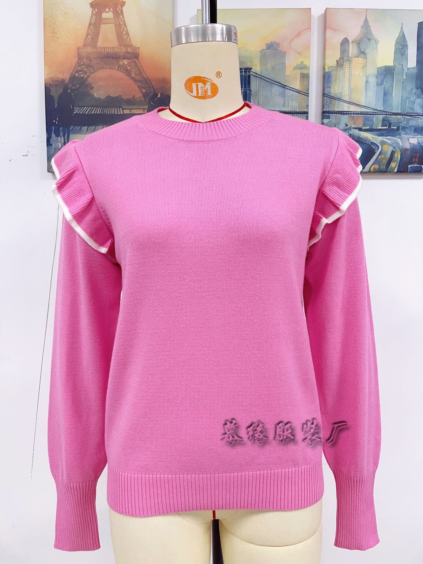 Nomikuma フリルニット因果ソリッド O ネックプルオーバーセーターニットトップスセーター Invierno Oネック ソリッドカラー
