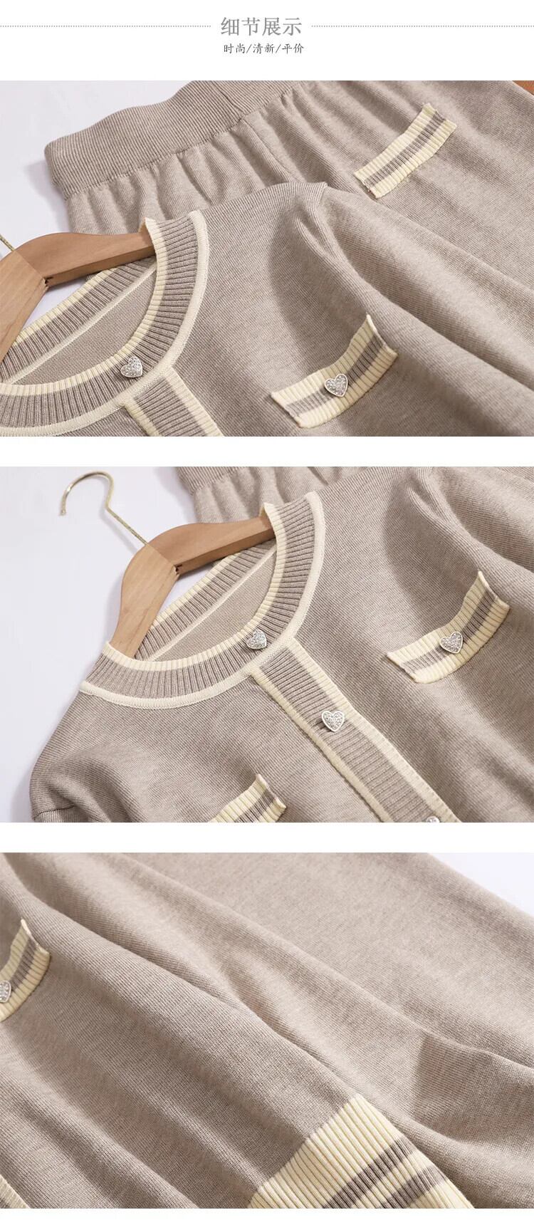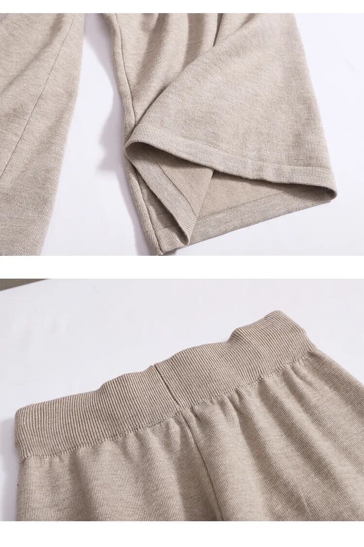 Nomikuma 秋冬ツーピース ラブハート シングルブレスト Oネック ニットトップス + ウエストワイドレッグロングパンツ オータム 秋物 ウィンター 冬物 ワイドパンツ