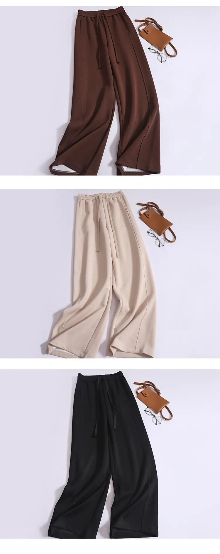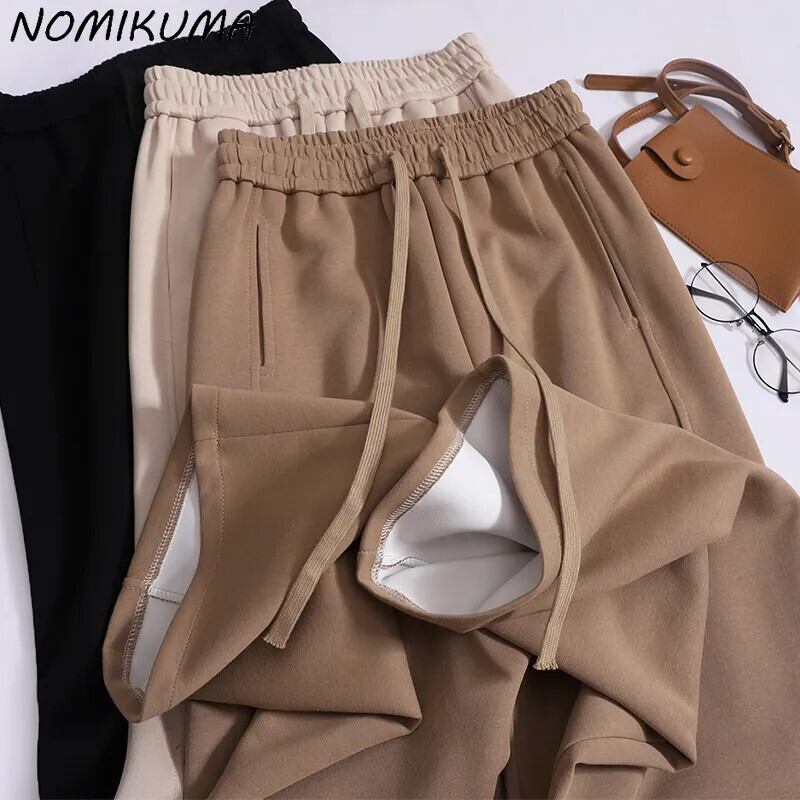 Nomikuma 秋レースアップウエストロングパンツカジュアルソリッドカラーズボンワイドレッグスウェットパンツ オータム 秋物 ワイドパンツ