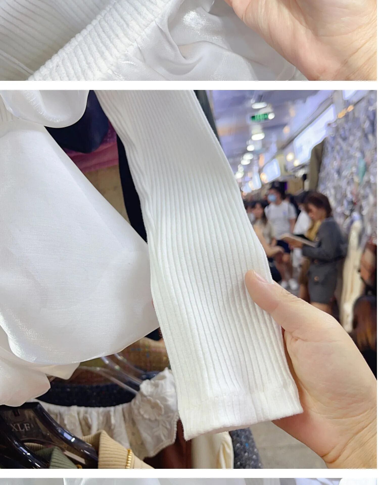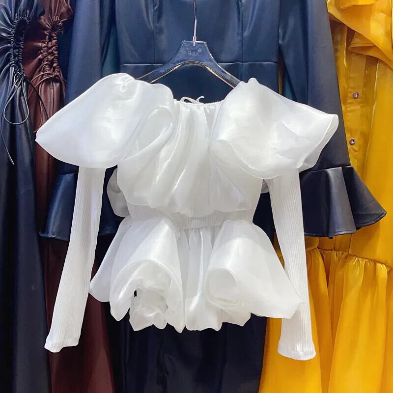 Nomikuma オフショルダーフリルニットパッチワークブラウス秋ストラップレススリムウエストシャツ オータム 秋物