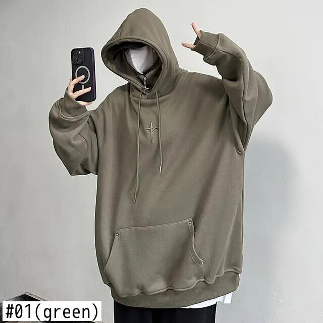 Nomikuma ストリートフード付きトレーナー男性秋冬クールパーカートップ因果長袖プルオーバージャンパー ロング オータム 秋物 ウィンター 冬物