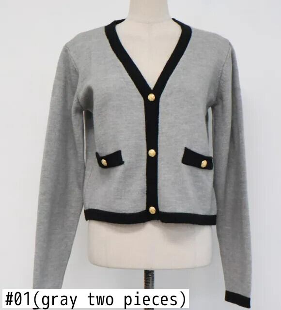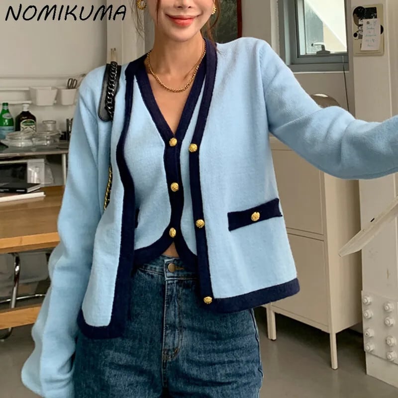 Nomikuma シック秋 V ネックシングルブレストボトミングベスト + ヒットカラー長袖ニットカーディガン ロング オータム 秋物 Vネック
