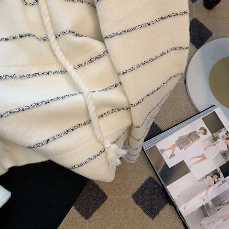 Nomikuma ストライプフード付きニット因果プルオーバーセーター秋冬ニットトップスセーター オータム 秋物 ウィンター 冬物