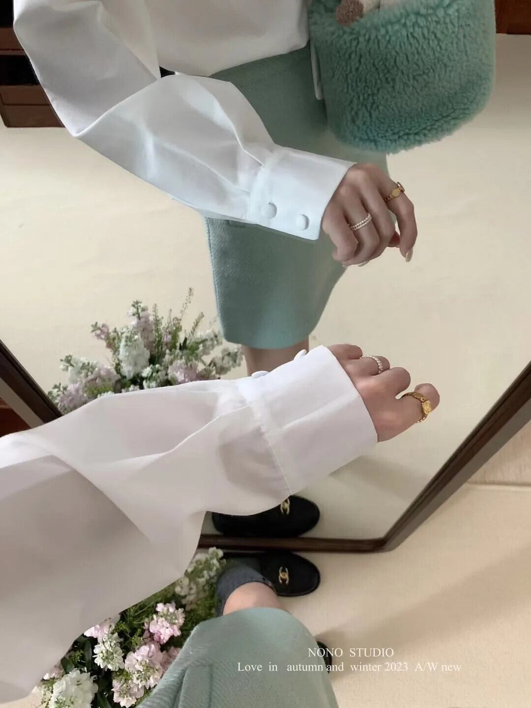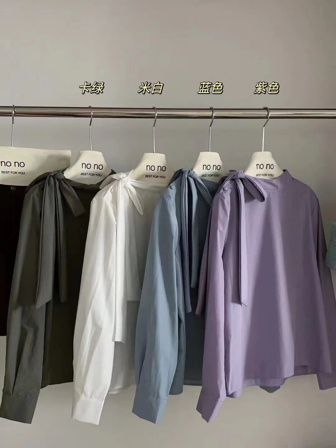 Nomikuma リボン包帯スタンドネックブラウスカジュアル長袖ソリッドシャツ De ロング ソリッドカラー
