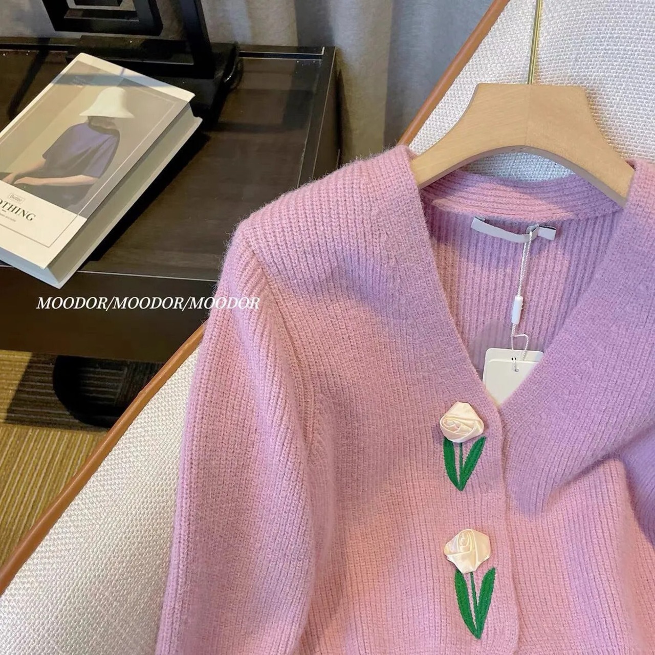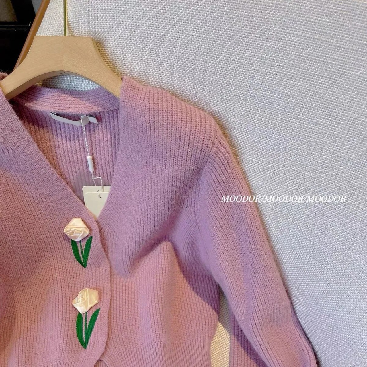 Nomikuma 甘い花柄 V ネック長袖ニット秋セーターコート因果シックニットジャケット ロング 大人ガーリー スウィート キュート カジュアル オータム 秋物 Vネック