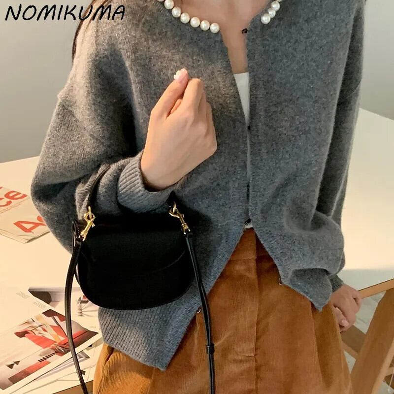 Nomikuma 秋冬セーターコートビーズ O ネックニットカーディガン因果長袖ニットトップス ロング オータム 秋物 ウィンター 冬物 Oネック