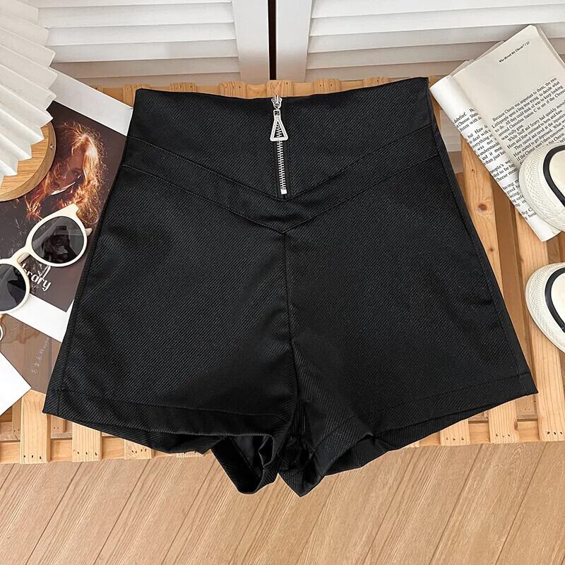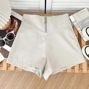 Nomikuma ジッパーウエスト PU ショーツ 秋冬 ボトムス レザー ワイドレッグ ショートパンツ オータム 秋物 ウィンター 冬物 ブルマー ワイドパンツ