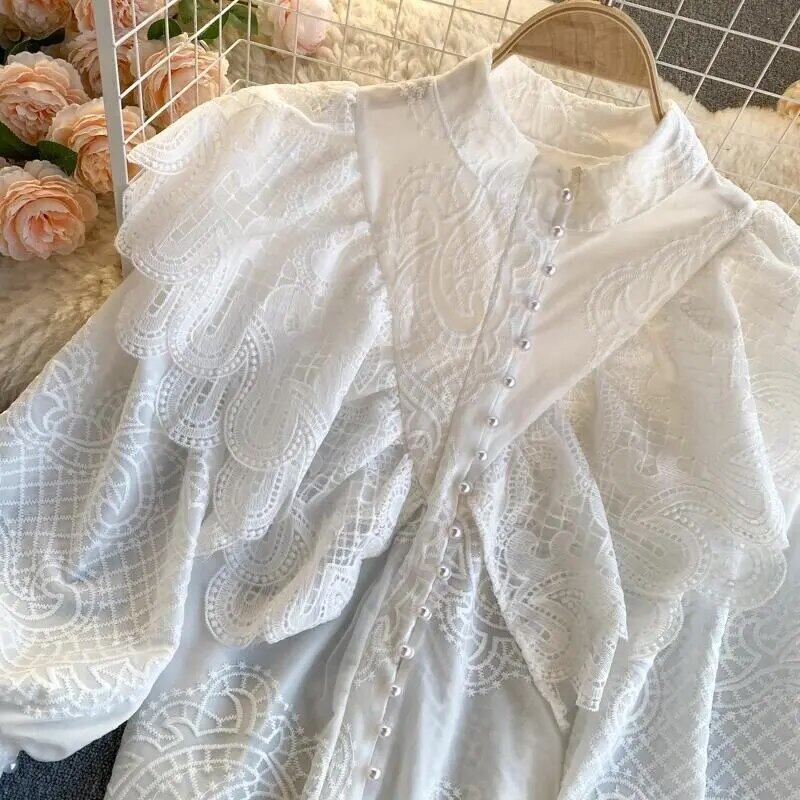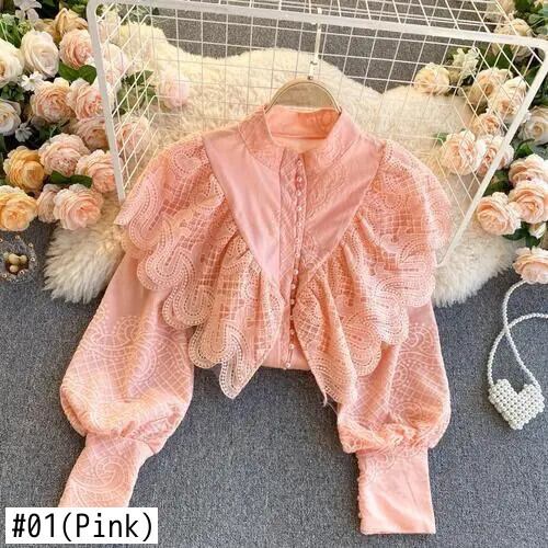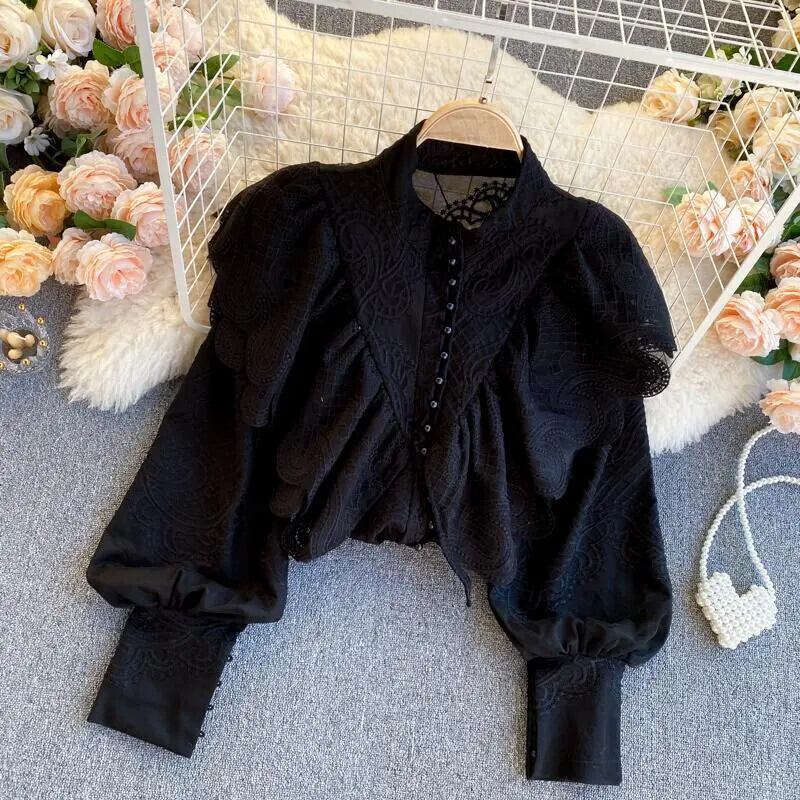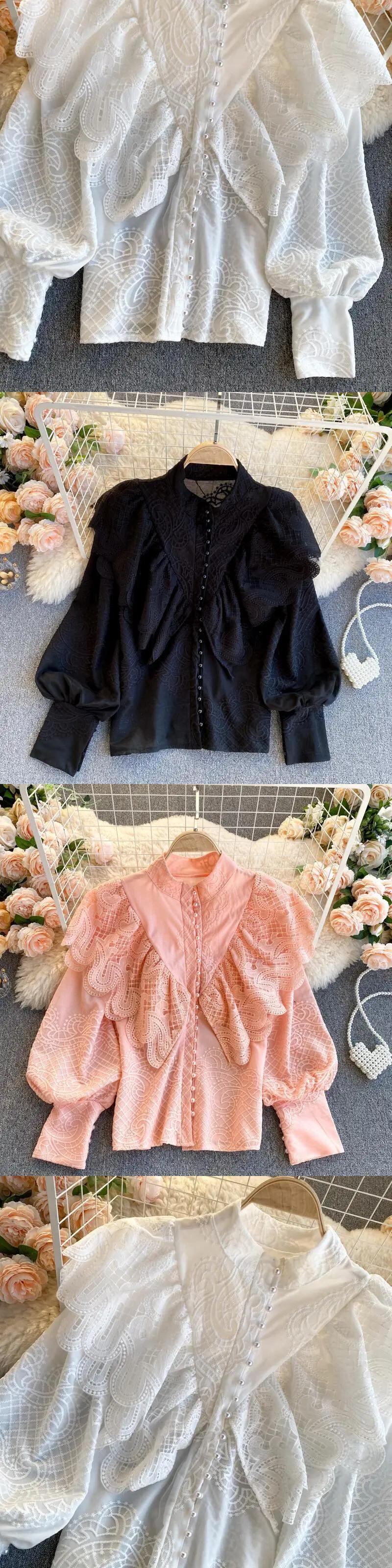 Nomikuam フリルスタンドネックシャツ秋ランタンスリーブブラウストップスデ オータム 秋物