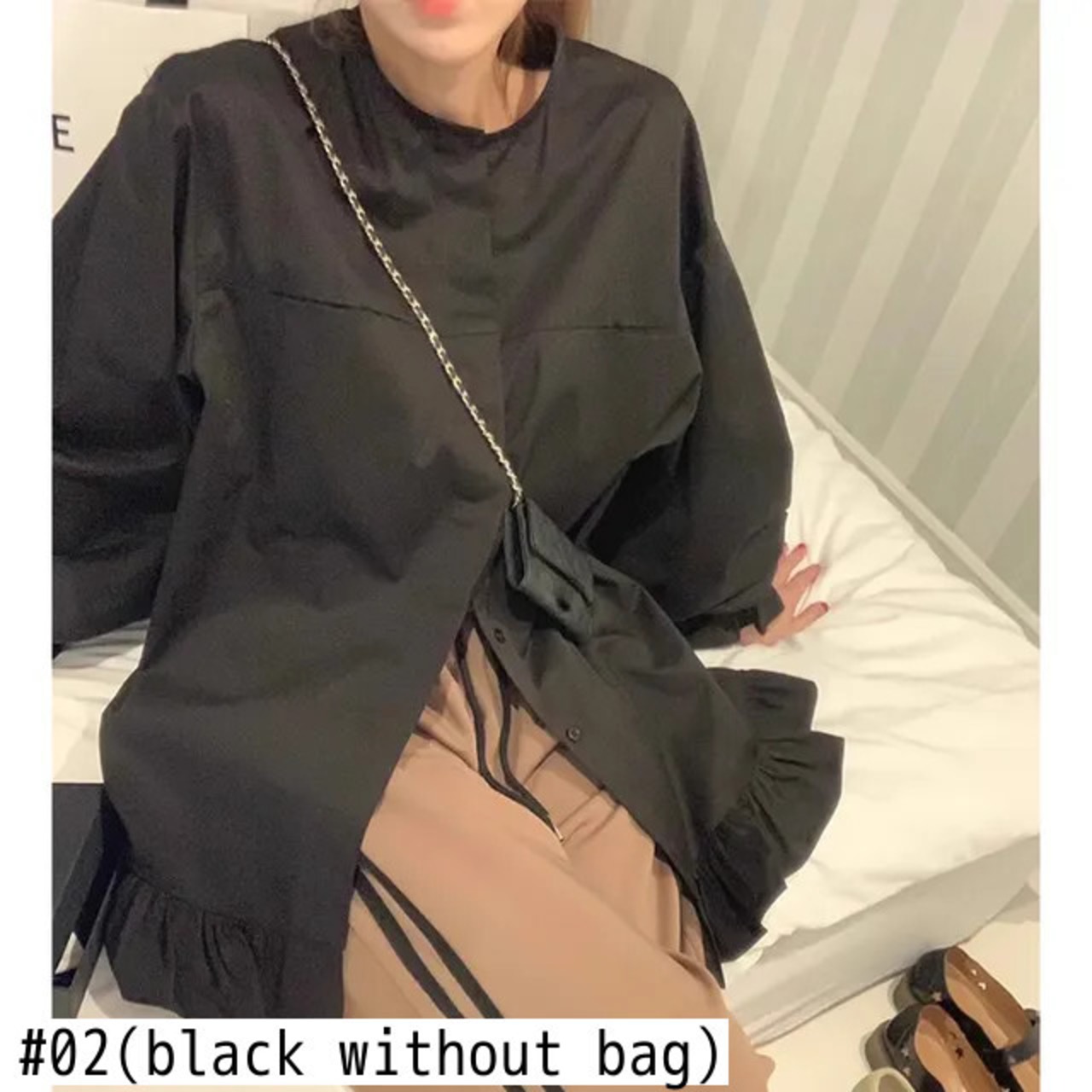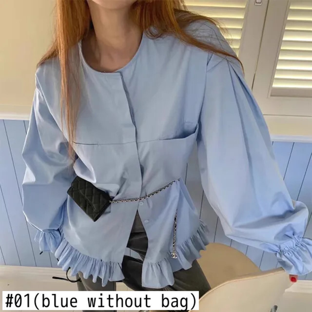 Nomikuma シック秋シャツ O ネックパッチワークフリルカジュアルミディアムロングフレアスリーブブラウスカミーサ オータム 秋物 Oネック