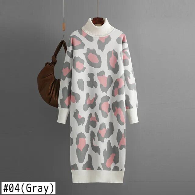 Nomikuma セーターボトリングドレス秋冬タートルネックヒョウ暖かいニットドレスストレート Vestido オータム 秋物 ウィンター 冬物