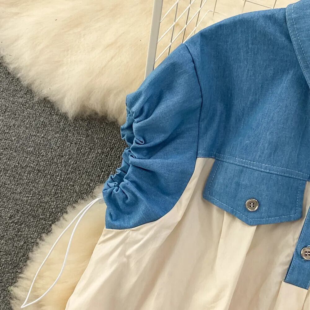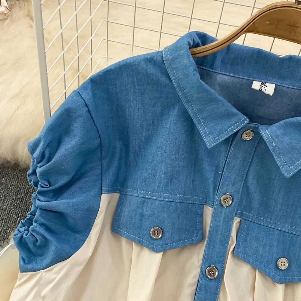 Nomikuma 因果 Fahison Demin パッチワークパフスリーブターンダウン襟ブラウスドレス夏 Vestidos サマー 夏物
