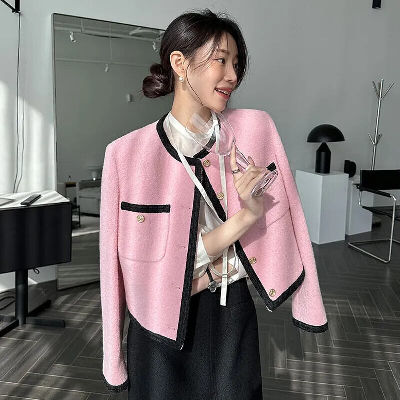 Nomikuma シックヒットカラー シングルブレスト O ネック ジャケット カジュアル 長袖 秋 カーディガン コート ロング オータム 秋物 Oネック