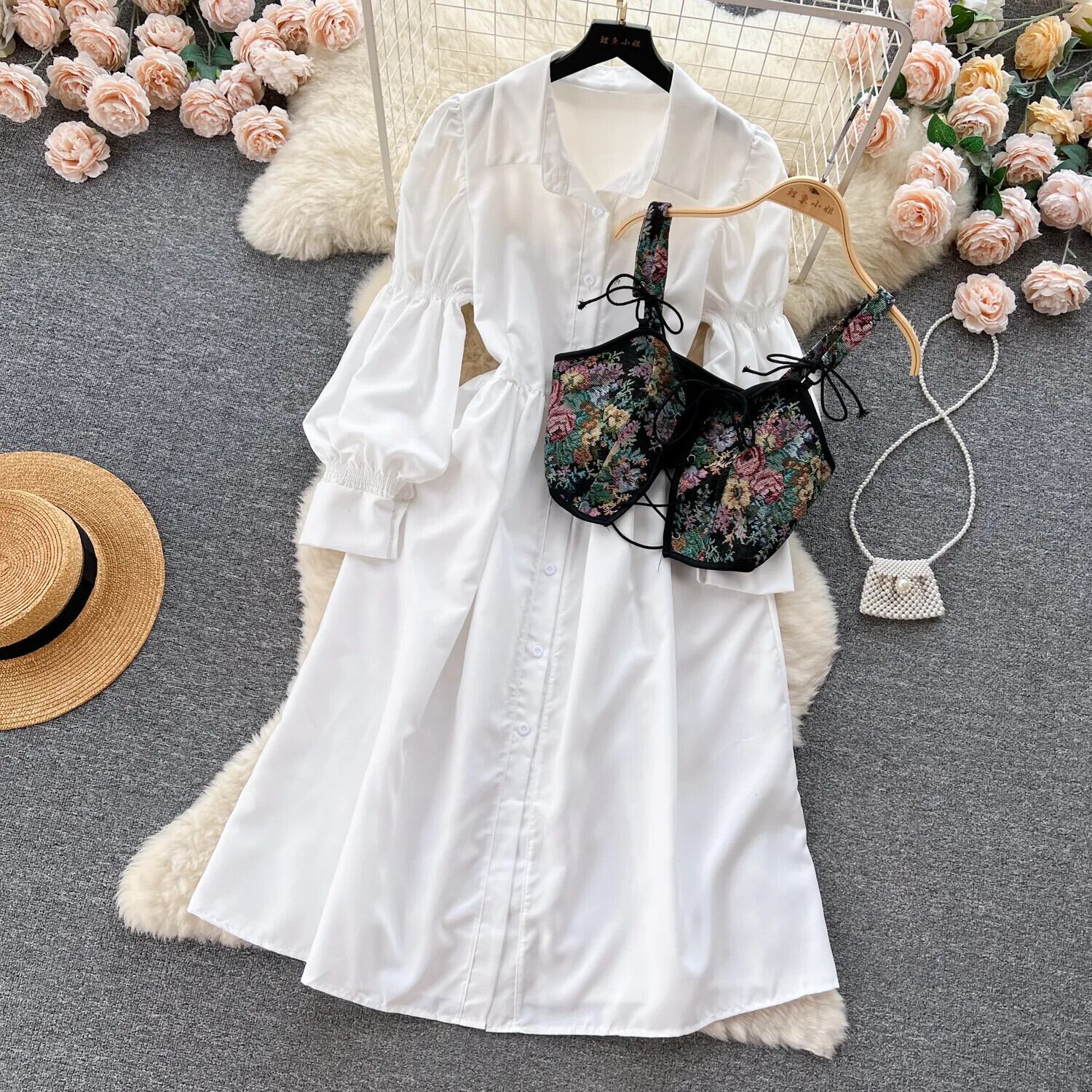 Nomikuma ドレス秋 2 ピースジャカードスリングベスト + パフスリーブブラウスドレスセット オータム 秋物