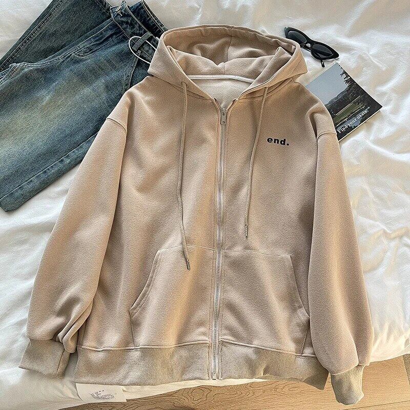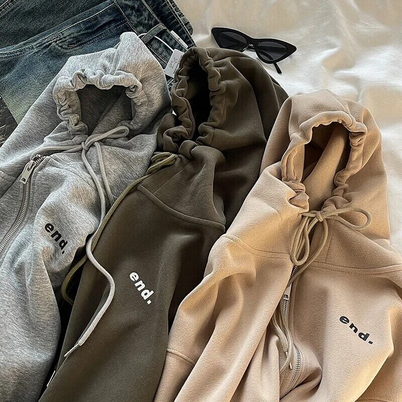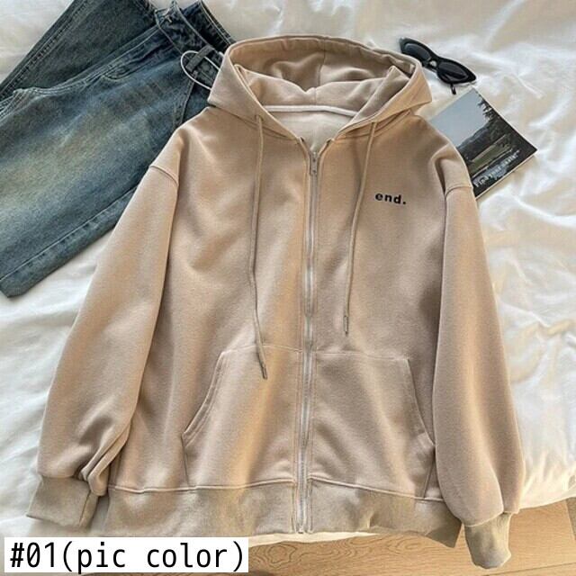Nomikuma 因果レタープリントフード付きスウェットシャツカーディガンコート秋ジップアップパーカージャンパー オータム 秋物