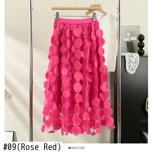 Nomikuma 3D 花メッシュ A ラインスカート秋ウエスト因果 A ラインロングスカート段 Faldas オータム 秋物 Aライン フラワーデザイン