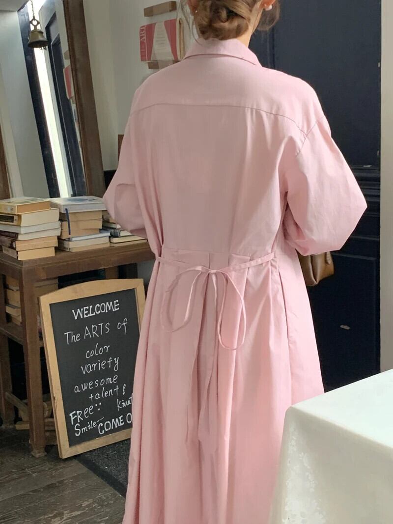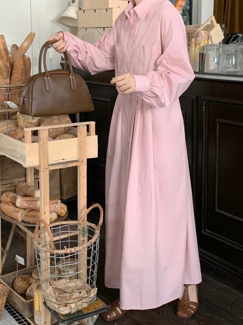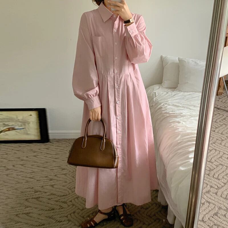 Nomikuma シック秋甘いターンダウンカラーブラウスドレスシングルブレスト長袖 Vestidos ロング 大人ガーリー スウィート キュート カジュアル オータム 秋物