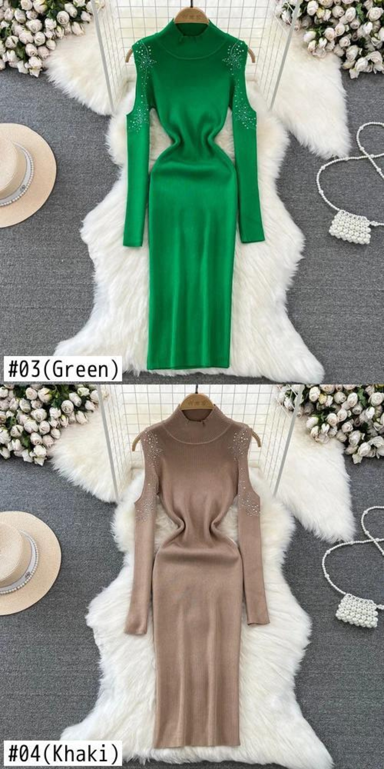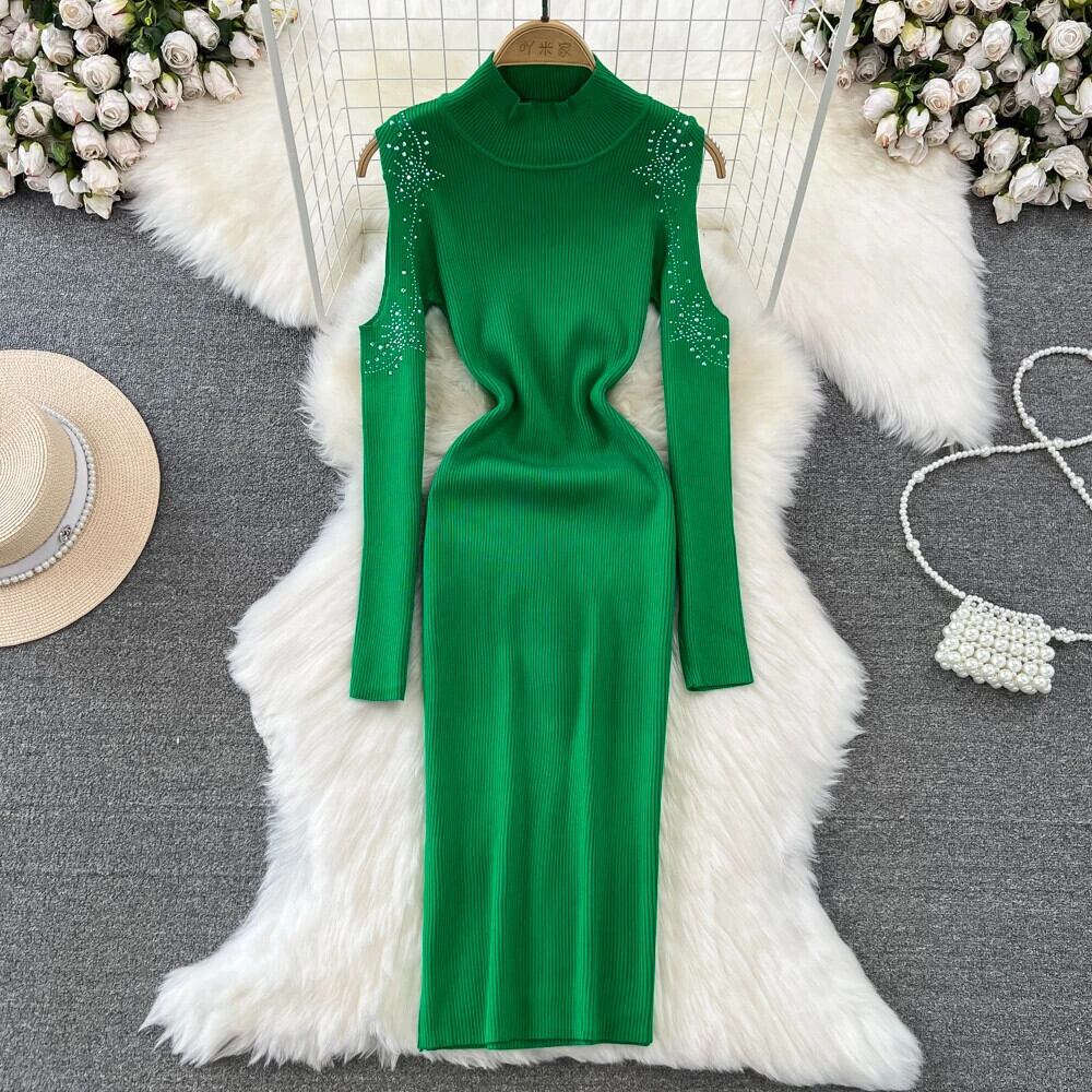 Nomikuma ハーフカラーストラップレスダイヤモンドスリムウエストロングニットドレスストレッチスリムセーター Vestidos
