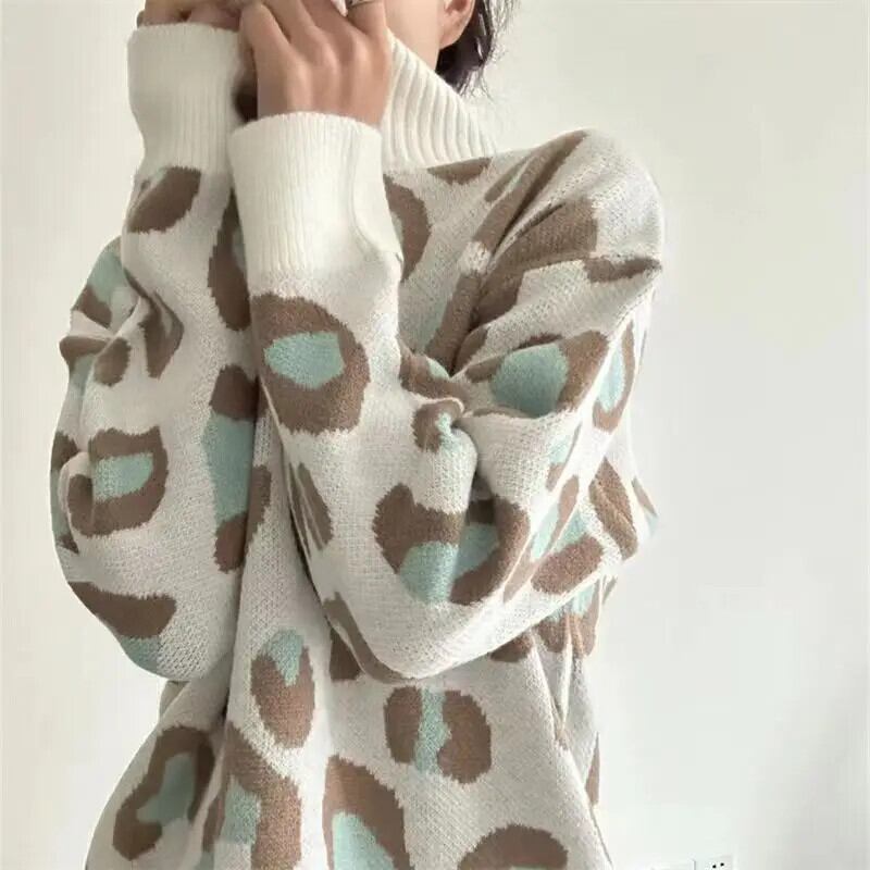 Nomikuma ヒョウプルオーバーニットセーター因果長袖半襟ジャンパー秋冬プルオーバーニット ロング オータム 秋物 ウィンター 冬物