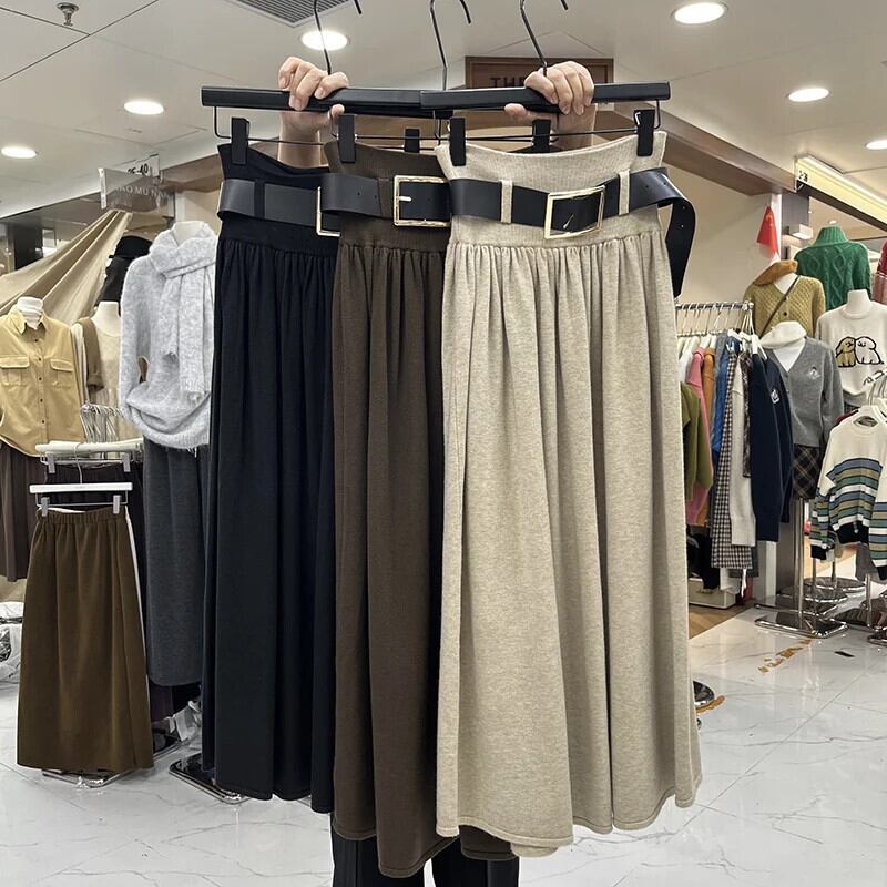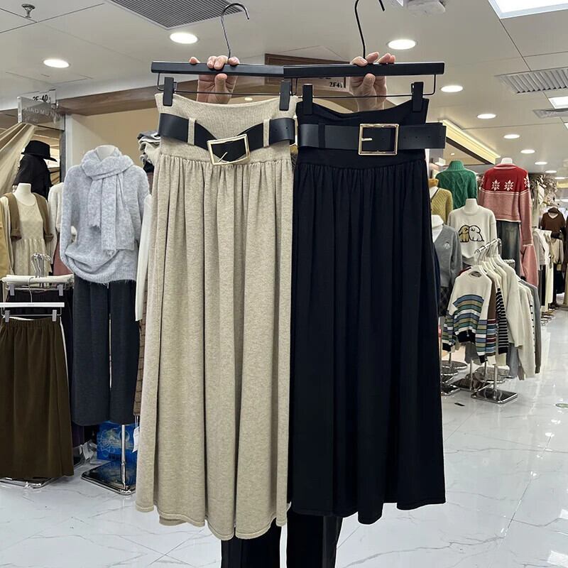Nomikuma 秋冬セータースカートウエストカジュアル A ラインニットロングスカートベルト Faldas デ オータム 秋物 ウィンター 冬物 ハーネス Aライン