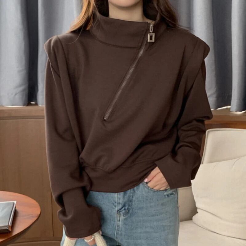 Nomikuma クール不規則ジッパースタンドネックスウェットシャツ因果ジャンパーシック秋冬パーカー オータム 秋物 ウィンター 冬物 ソリッドカラー