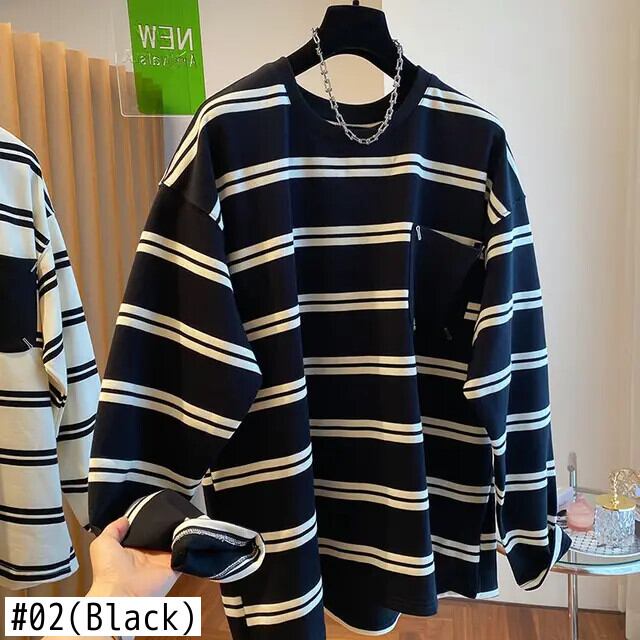 Nomikuma ヒットカラーストライプスウェットシャツ因果長袖 O ネックジャンパー秋プルオーバートップス ロング オータム 秋物 Oネック