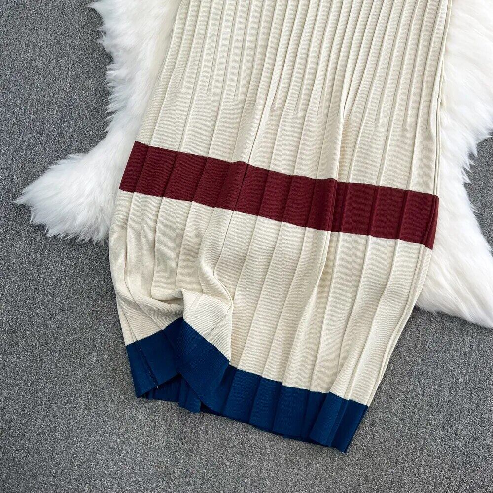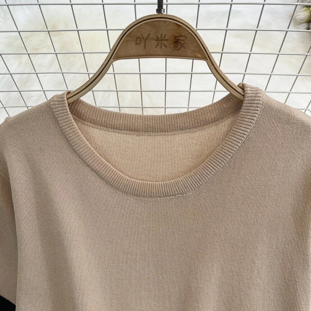 Nomikuma 夏シック半袖 O ネック因果 A ラインストライプニットドレスロングセーターローブ ショート ハーフスリーブ サマー 夏物 Oネック Aライン