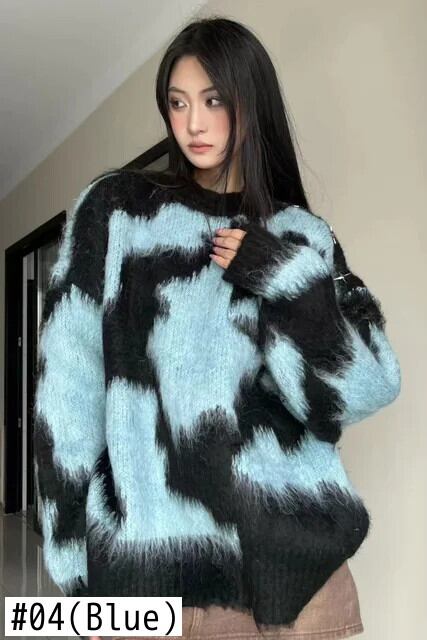 Nomikuma 因果タイダイプルオーバーニットセーター秋冬プル因果 Logn スリーブ O ネックニットジャンパー オータム 秋物 ウィンター 冬物 Oネック