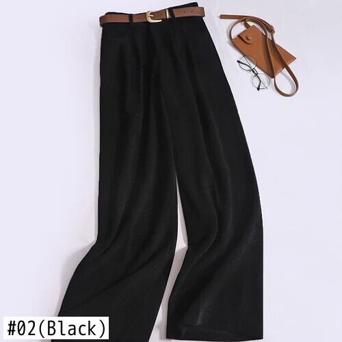 Nomikuma 秋ウエストコーデュロイワイドレッグロングパンツベルト因果ソリッドズボン Pantalones オータム 秋物 ハーネス ワイドパンツ ソリッドカラー