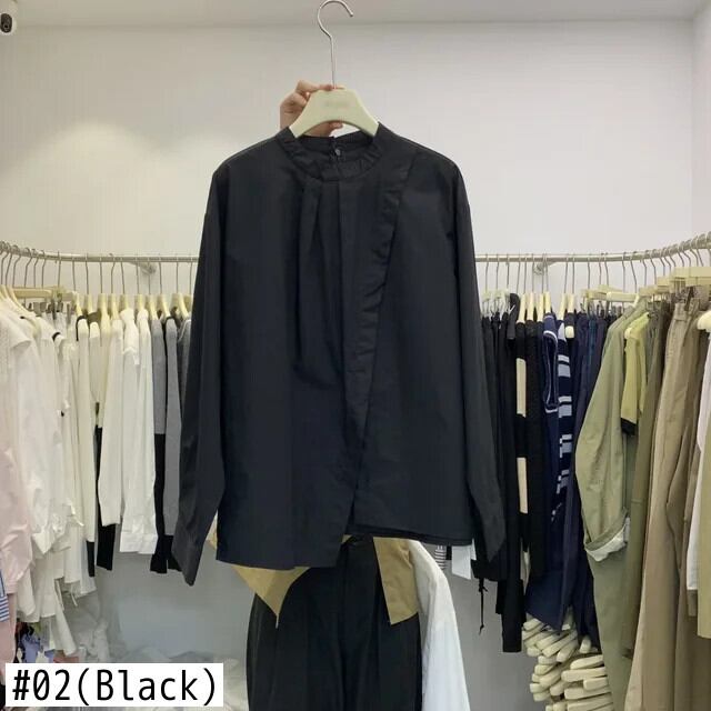 Nomikuma 秋不規則スタンドネックシャツスタイルバックジッパー付き多用途長袖トップ ロング オータム 秋物