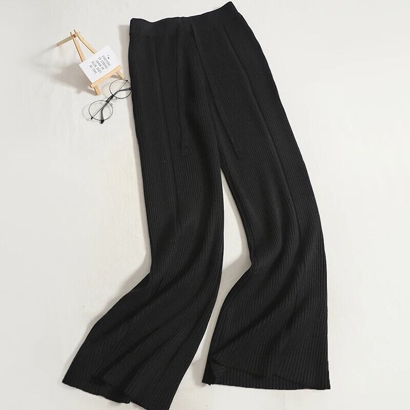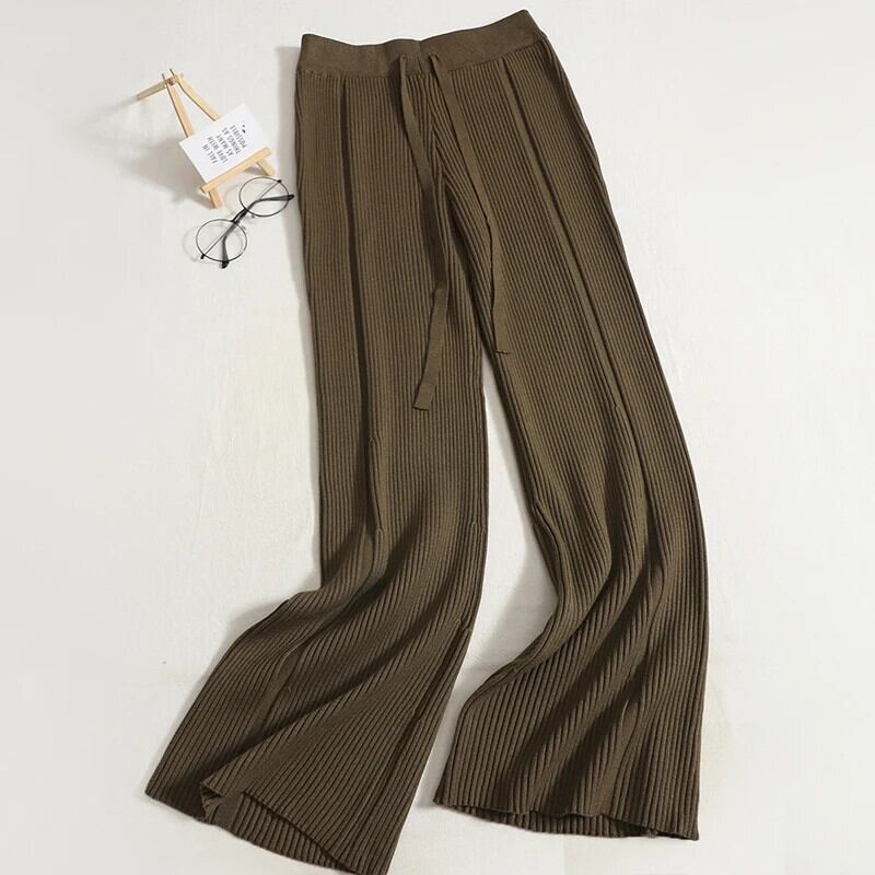 Nomikuma ニットロングパンツ秋冬巾着ウエストゴムセーターワイドレッグパンツ エラスティック 伸縮 オータム 秋物 ウィンター 冬物 ワイドパンツ
