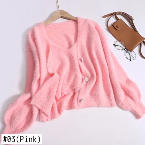 Nomikuma 長袖ニットカーディガン レディース 秋 シングルブレスト ぬいぐるみ トップ+Vネック ショートサスペンダー 2点セット ロング オータム 秋物