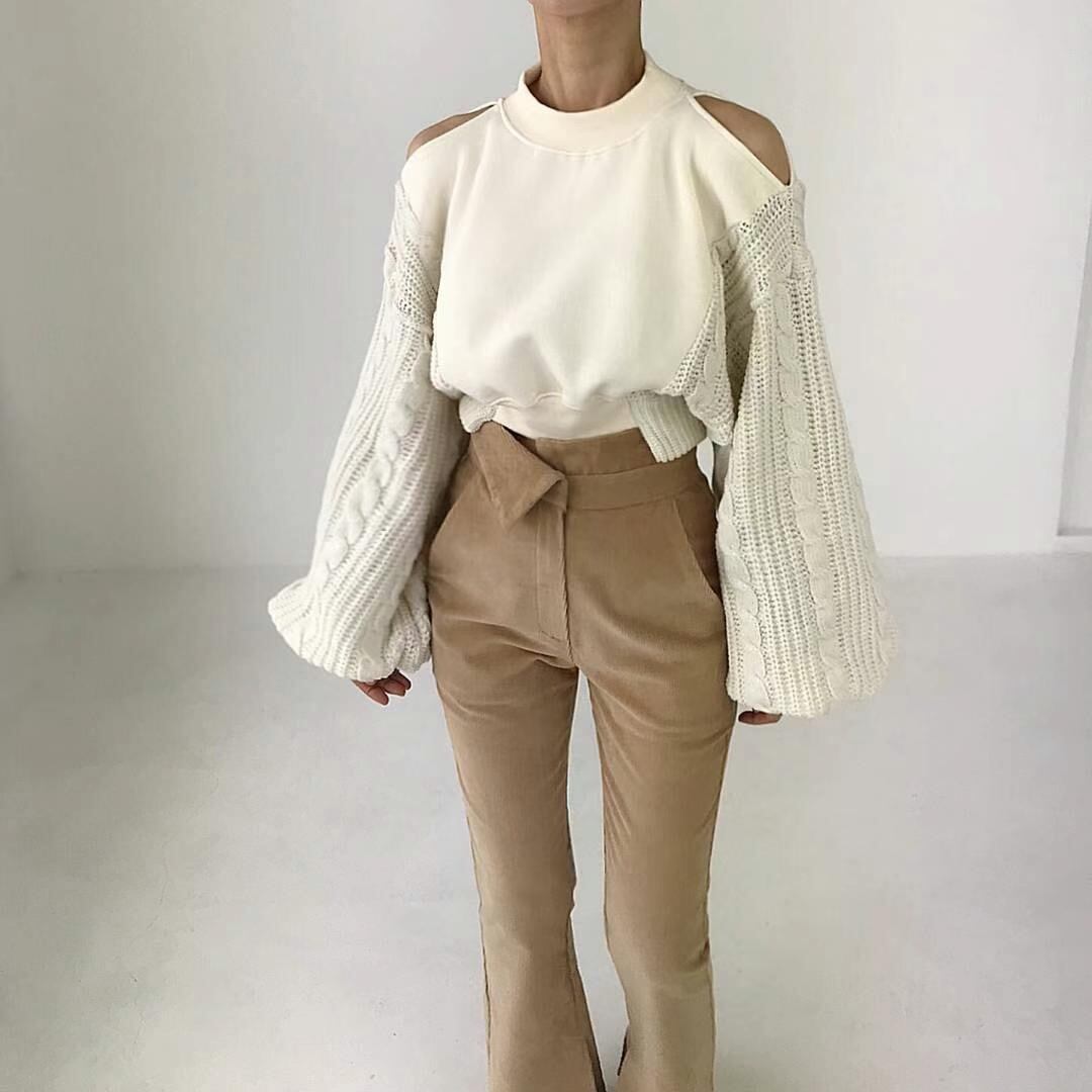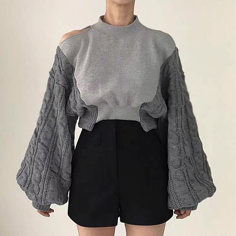 Nomikuma シック秋多彩コントラストニット長袖トレーナーカジュアルプルオーバーショートジャンパー ロング オータム 秋物