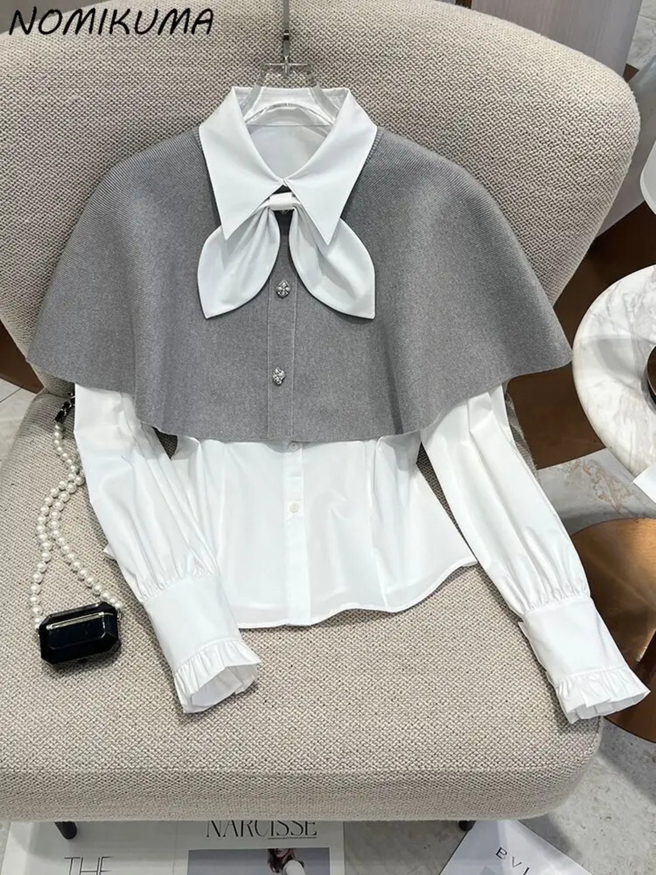 [ノミクマ] 秋 長袖シャツ レディース ニットショール 2点セット ロング オータム 秋物